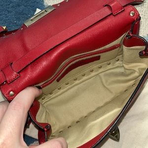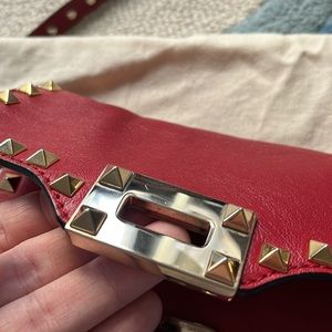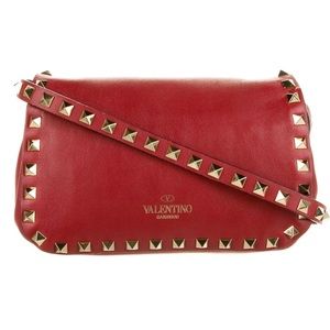 100% authentic Valentino Crossbody Bag ♥️ in Excellent Condition, few very minor scratches on metal flap buckle, all rockstuds in tact ♥️ Red Leather / Gold-Tone Hardware ♥️ comes with dust bag pictured ♥️ Single Adjustable Shoulder Strap ♥️ Studded Accents ♥️ Twill Lining & Single Interior Pocket ♥️ Fold-In Flap Closure at Front ♥️ Shoulder Strap Drop Max: 24"