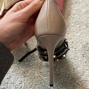 After taxes original price was $1087.00, asking for $950.00 - Purchased through Nordstrom (if your familiar with their repair policy should they ever get damaged). 8.5 Size, Nude, Leather, Excellent Condition, Worn maybe 3 times, has scuffs only on the bottom. Prior to shipping I will record myself and the undamaged shoes being packed into the box with its tracking info to avoid potential scammers claiming shoes are not up to par and/or damaged.