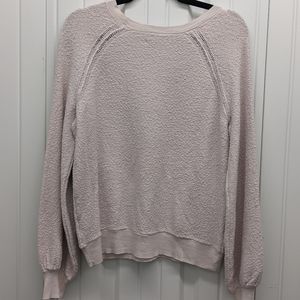 New with out tags light pink large American Eagle sweater. This is a soft boucle sweater material from American Eagle. This pull over american eagle sweater measures approximately 19in pit to pit and 24in shoulder to hem. This American Eagle crew neck sweater is perfect and light weight for winter and early spring.