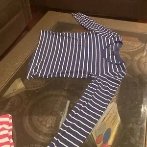 Slightly used women blue and white striped Polo shirt.