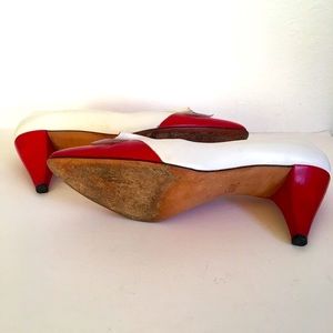 Vintage Bruno Magli heeled pump 7 1/2 Red White Leather Made in Italy
