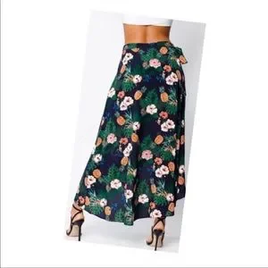Maxi Skirt • Navy w/ Hawaiian Flowers & Pineapple Print • 100% Rayon
