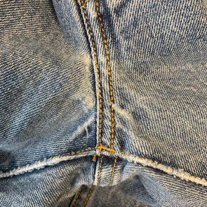 Condition consistent with age of jeans/Excellent used condition/Broken belt loop/Distressed crotch