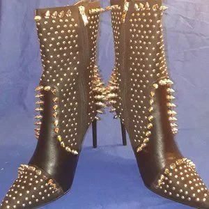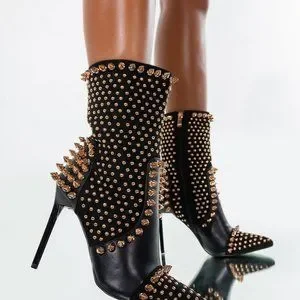 AZALEA WANG SPIKED "DIABELSTAR BHADDIE" STILETTO BOOTIE IN BLACK
