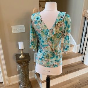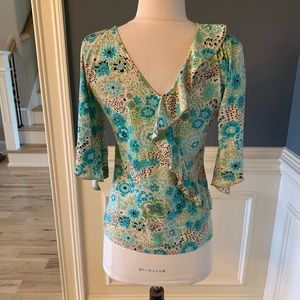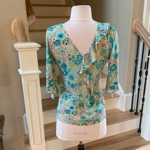 Saint Tropez West Top Groovy Silky Womens Small Floral Spring Hippie