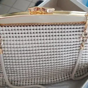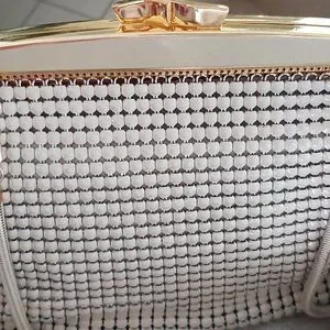 Glomesh Style 212 Bag. Unused. Bone Colour. Still in the box with the 1977 sales receipt. The extra chain is also in the bag.