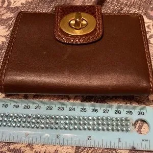 Coach wallet in supple smooth brown leather with snake pattern.