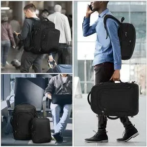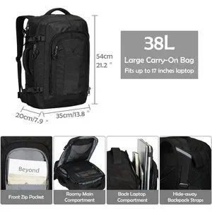 Large Carry on backpack. Designed with back laptop compartment for 17 inches, roomy main compartment providing spacious capacity for your supplies, detachable organizer sleeve which can not only store your gadget but also fasten your items from sloshing around.