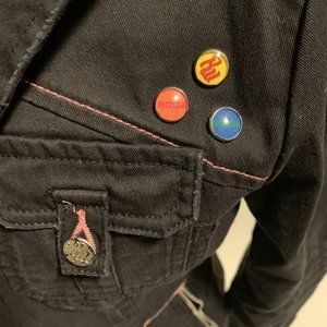 Vintage Rocawear Jacket Black Pink Embroidery Logo Buttons Lightweight Y2K