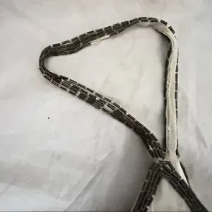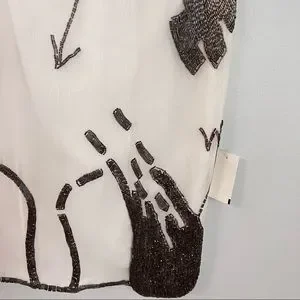 Unique geometric beaded pattern with shaped hemline