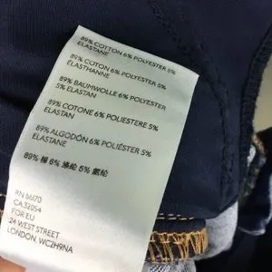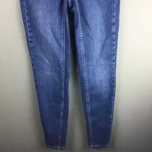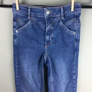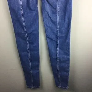 New without tags. We The Free Free People ‘Riley’ jeans. Skinny leg. Seamed details with exaggerated yoking and contrast stitching. Mid-rise. Ankle grazing length. Super stretch denim. Front pockets. Zip fly with button closure. ‘Daybreak’ wash. Cotton/polyester/elastane. Size 24.