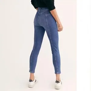 NWOT Free People Riley Seamed Daybreak Wash Mid-Rise Ankle Skinny Jeans Size 24