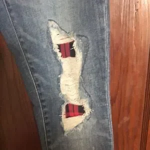I think I only worn these once. I need to downsize. Look brand new. Has distressed knees with patches, matching cuffs. Can be cuffed or not. Inseam 28” rise 10” any questions please ask. I accept all reasonable offers