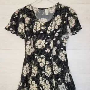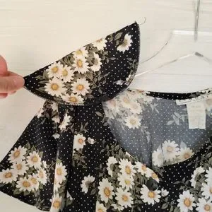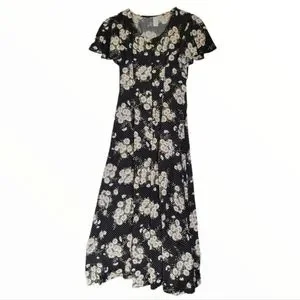 Vintage Daisy Print Button Front Midi / Maxi Dress Size Small