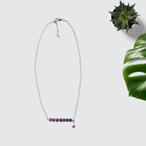 Handmade hematite star chain princess necklace with amethyst and black striped agate gemstone beads. Made with stainless steel findings.
