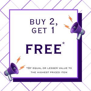 All beaded items (jewelry and keychains) are Buy 2, get 1 FREE *of equal or lesser value to the highest priced item* with no added shipping. Simply purchase 2 beaded items of your choice and let me know which 3rd product you would like for FREE.