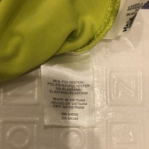 * 95% polyester, 5% elastane. Color is more of light green color, kinda mix of green and yellow depend on lighting