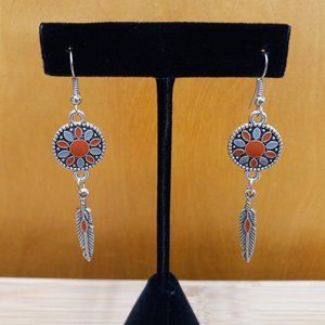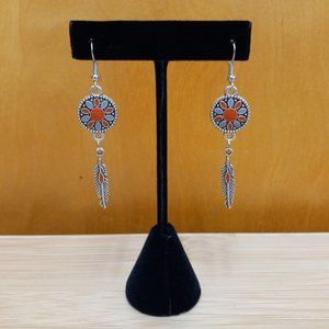 NEW Boho Southwestern & Silver Feather Drop Earrings