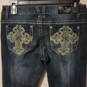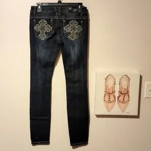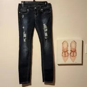Wishful Park distressed dark washed skinny denim jeans Low rise fit Size 7