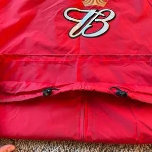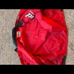 This jacket is in fair condition. Some mild black staining in a few areas, I think it MAY come out with a little elbow grease and the right cleaner. Seemed to get lighter with a little dish soap and a paper towel. See photos. Zipper works flawlessly!