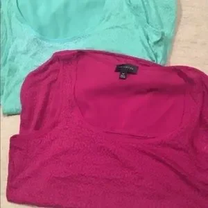 Woman’s extra small tank tops, one pink and one aqua. Never worn. It has pretty Aztec pattern with sheer upper back (see pictures).