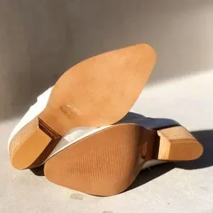 NEW Distressed Pointy Toe Stack Block Heel Western Ankle Booties Boots Off White