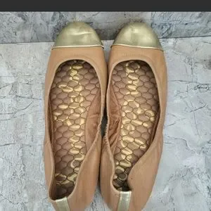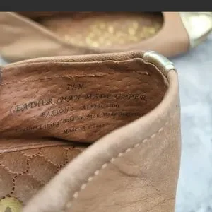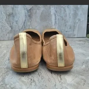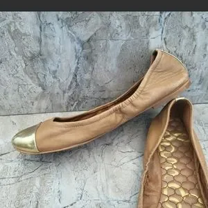 Sam Edelman Women's 7.5 Baxton 2 Tan Leather Gold Cap Toe Slip On Ballet Flats
