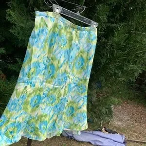 With a little flip on the bottom, teals, greens, yellows, and white are reminiscent of a a lovely watercolor.