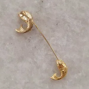 Vintage Gold Tone Jumping Koi Fish Stick Hat Pin Brooch