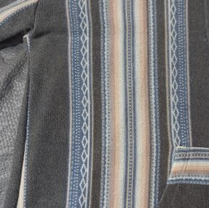 It has a couple of small snags and one bigger one on the sleeve but it's still a great hoodie. Excellent condition otherwise. Aztek design. Lightweight fabric. Kangaroo pocket and drawstring hood. Feel free to ask any questions or for more pictures. Smoke free/pet friendly home. Measurements are approximate: