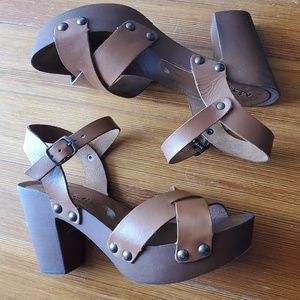 Made in Italy. 3" heel (with platform) super comfy. Leather straps. Super lightweight. In good condition. A few signs of wear on the heel and toe. See photos. Comfort pads wear added at ball of foot. Modeled photos for style idea only.