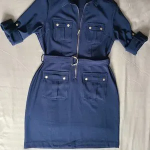 SUZY SHIER (NEW) Navy Blue Cargo Dress w/Brass Buttons