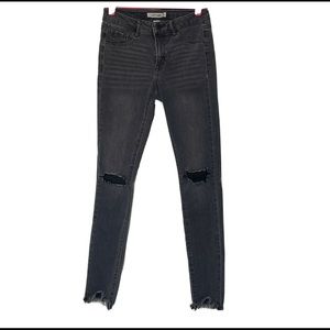 Refuge Women's Size 0 Skinny Distressed Mid/high Rise Light Wash Jeans - Black.