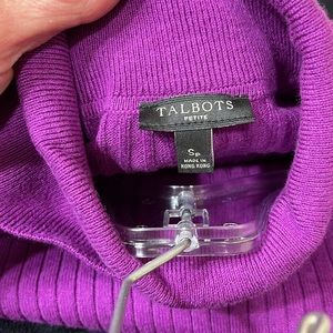 Fuscia/Purple turtleneck sweater with button cuff sleeves.