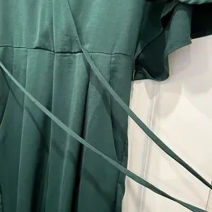 Strut & Bolt Satin Wrap Jumpsuit in forest green. It’s a beautiful color. Size small. 14in waist. Slim in the legs as the picture shows. Has a side zip. Once once for a wedding.
