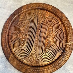 Wooden Collapsible Carved Basket/Trivet Two Compartments Rosewood NEW. See all photos for details. This can be used as a basket or as a trivet. It is in new condition.