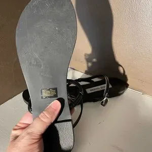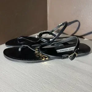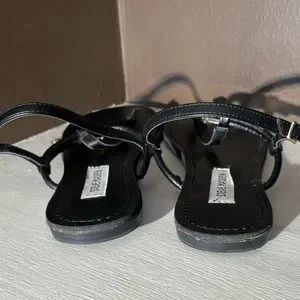 Cute black sandals with gold bow hardware