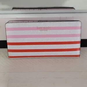 Kate Spade snap closure wallet. Pink, white, orange stripes. Perfect condition. Smoke free home. 12 slots for credit cards, with ID slot.