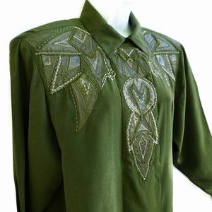 NEW SiLK Leather Real Snake Green Blouse Concealed Buttons Southwest Streetwear