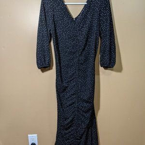 Brand new dress from Zara. It is made of a light textured flowy material. The front has strings that you can pull to cinch it all the way up to your hip height. Size small. Sleeves are puffy and have elastic at the end. V neck in the back.