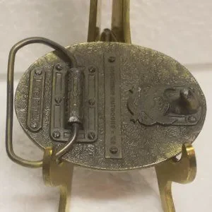This limited edition vintage belt buckle is in good vintage condition. This belt buckle had a shiny front with a deer, fish and duck. This is a smaller belt buckle please see images for more detail of size.