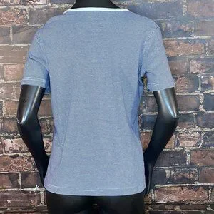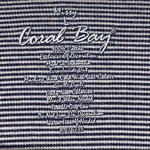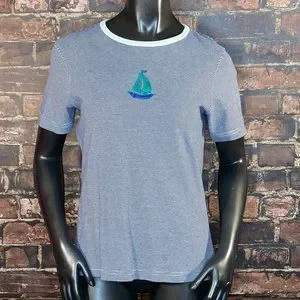 Coral Bay T Shirt pre owned blue stripe has sequin sail boat on front in great shape pit-pit18" sleeve length 7" overall lenght 25" size Missy L