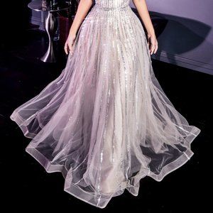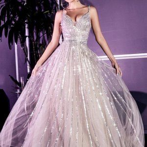 NWT Platinum Prom party evening FORMAL long A-LINE EMBELLISHED TULLE GOWN CD940