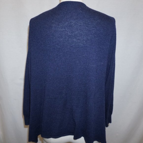 REBECCA TAYLOR Fringe Cardigan LARGE Navy Blue wool blend open