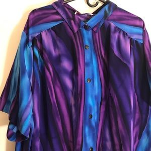 This is a beautiful short sleeve blouse by A Personal Touch. The color combination of purples and blues are lovely.