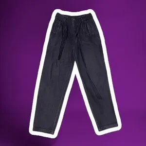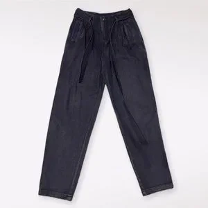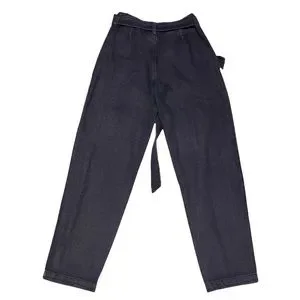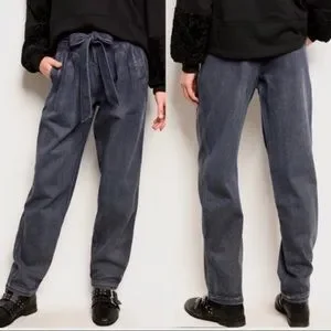 NWT VERY J Belted Bow Zip Button Relaxed fit Baggy Black Denim Jeans