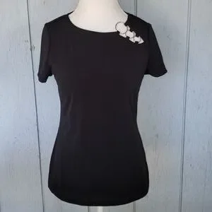 NWOT Black Tee. Silver Ring. Elegant Sexy