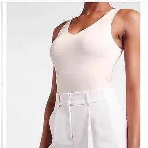 New L Express Pale Pink Bodysuit v neck Thong Double Layer Contour Top Blouse