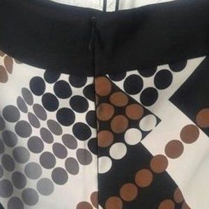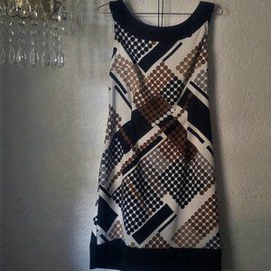 Connected Apparel size 12, sleeveless, center zip, polyester spandex, abstract polka dot sheath dress. Measurement taken with dress flat armpit to armpit 18" length 36.5". No stains no tears comes from a non smoking home no trades no modeling. Necklace shown sold separately.
