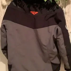 Men’s performance snowmobile jacket in good condition. Some of the pocket zippers do not work. The main zipper to zip up the jacket works fine. Only some of the pocket zippers. All items come from a smoke free home